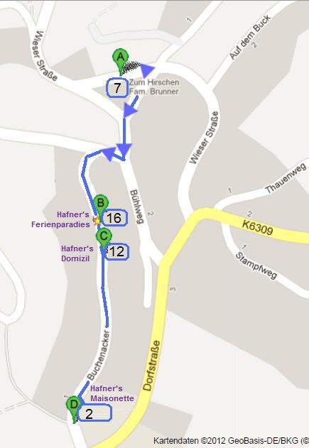 ... Von Badenweiler - Wies her kommend fahren Sie zum Gasthof-Hotel Hirschen und folgen dem hier dargestellten Plan.